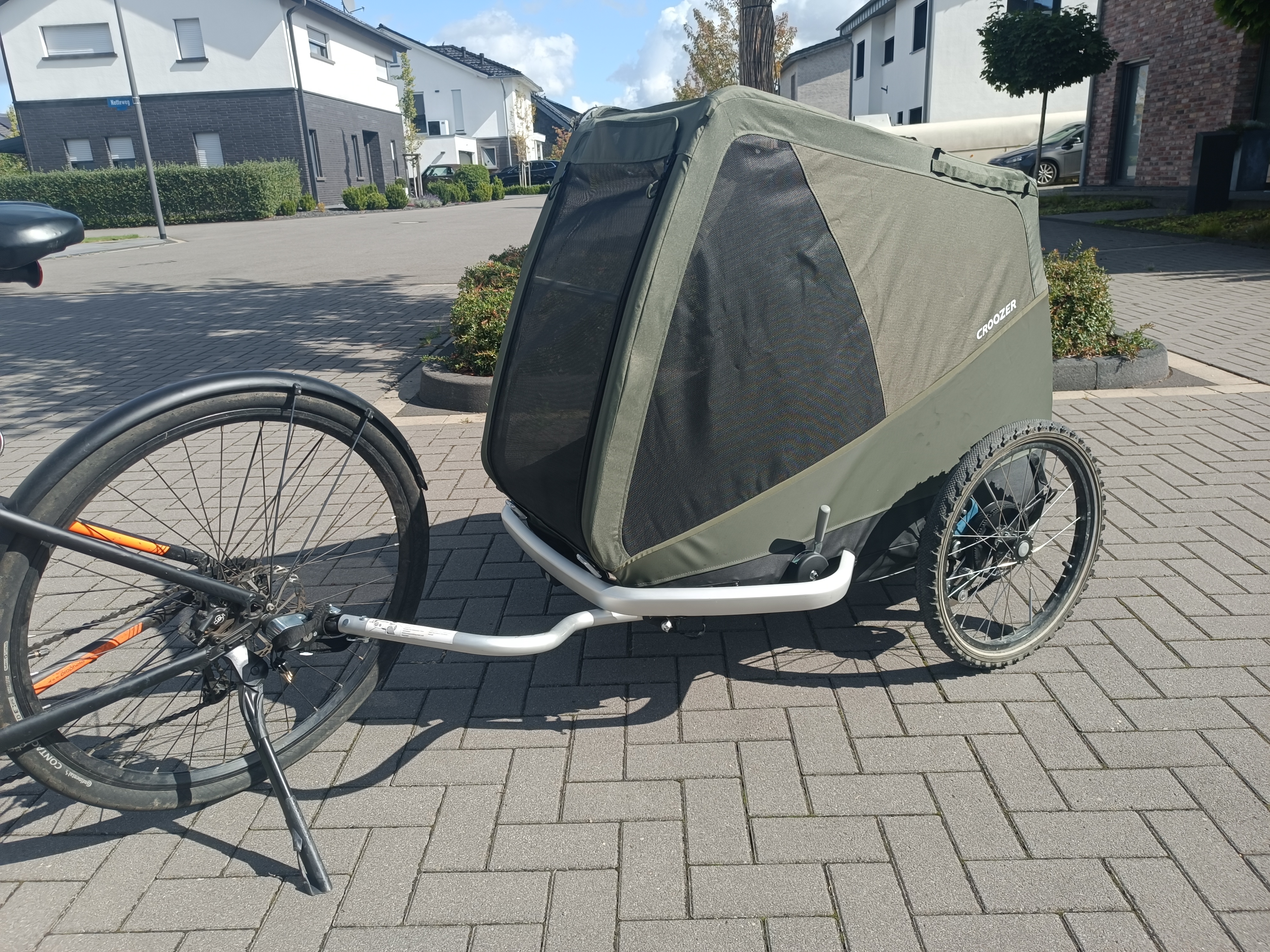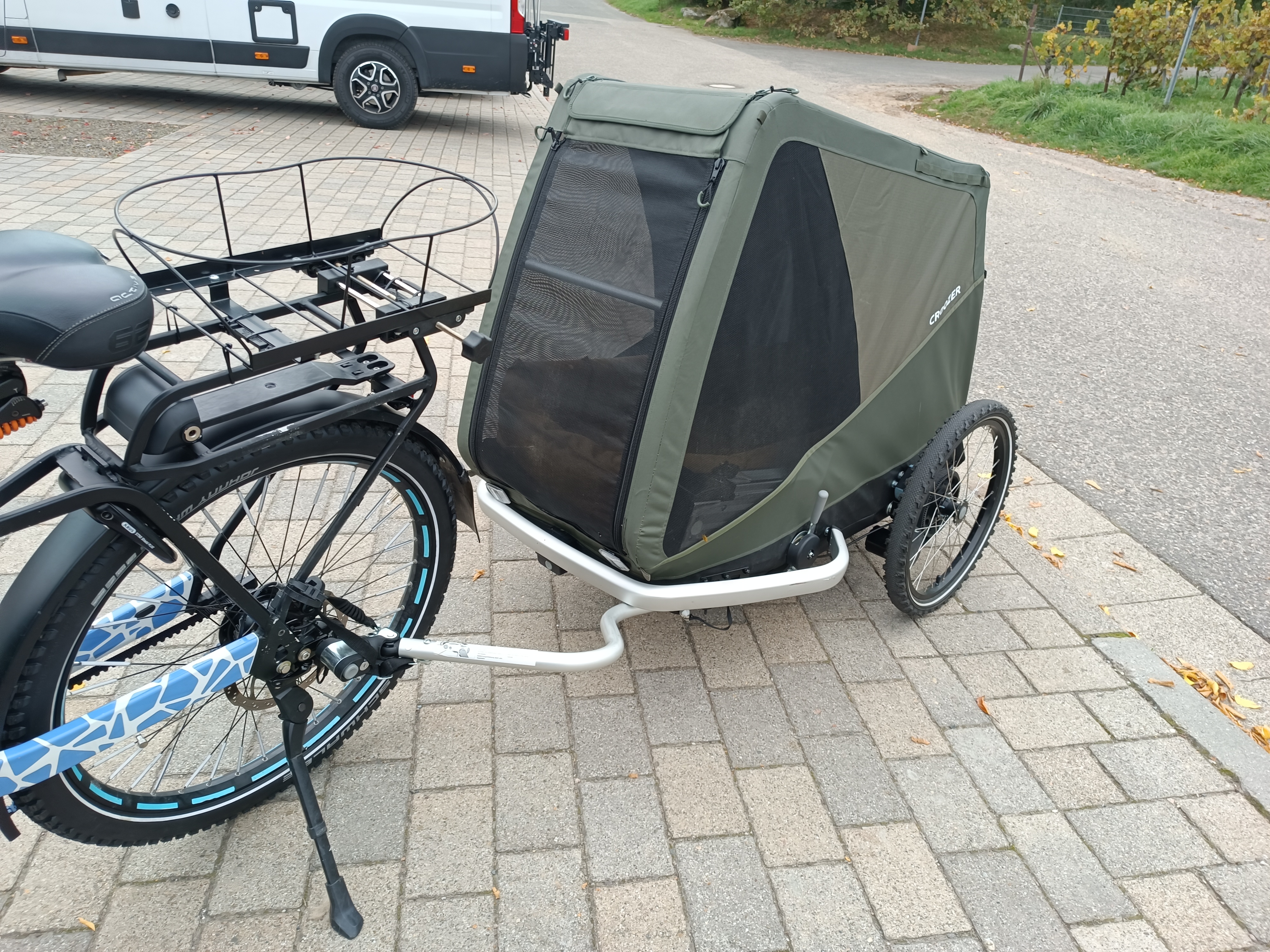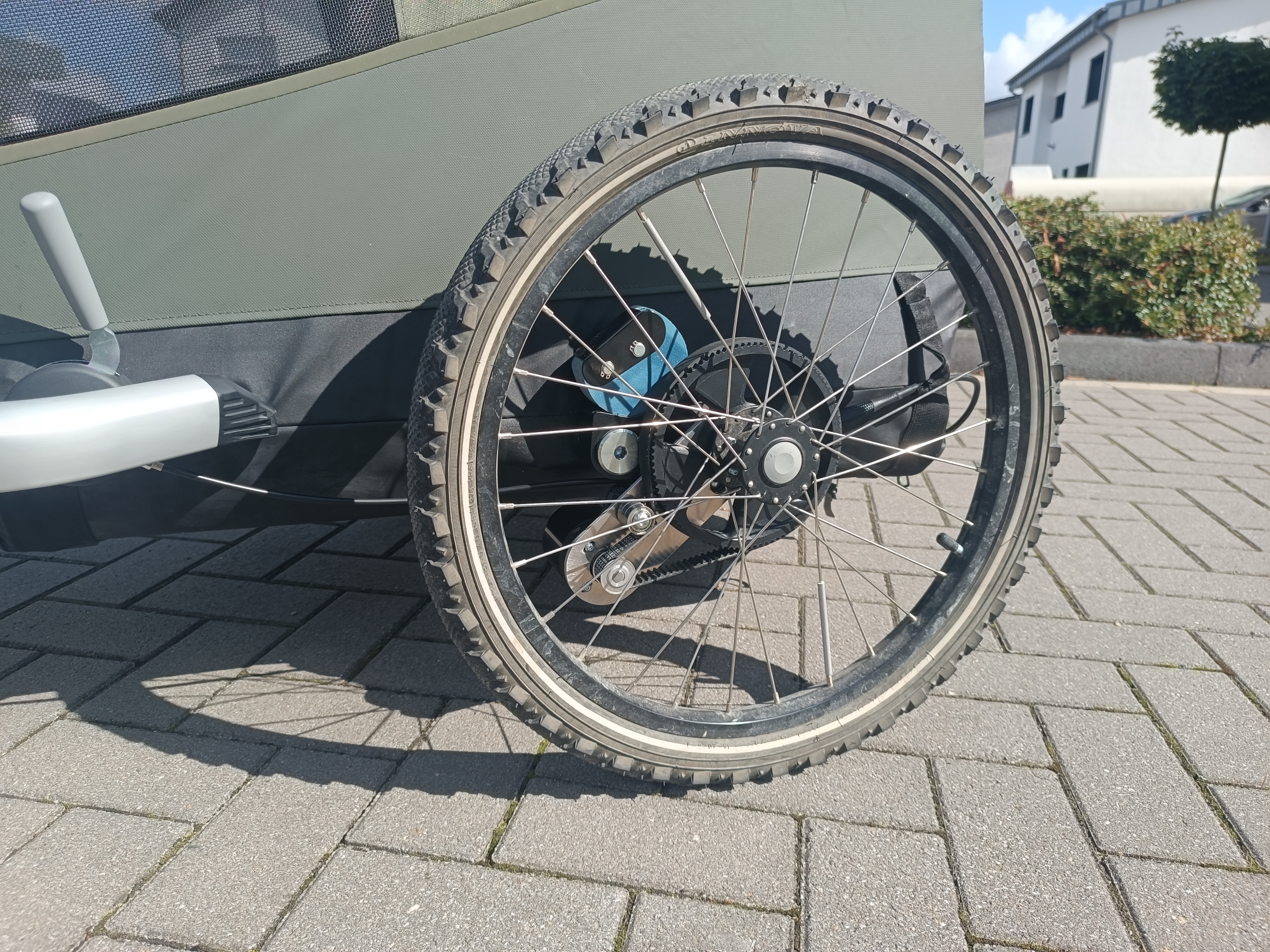 Der große Hundetransporter mit elektrischer Unterstützung ist da. Der Dog Tammo vom Kölner Hersteller Croozer bietet Platz für große Hunde bis 45 kg. Die Motorschwinge von TailDrive ermöglicht Federung, Antrieb und Demontage der Steckachse. Die Motorsteuerung mit dem Pedalfunk von electrail erweckt den Antrieb zum Leben und passt den Schub Ihrer Trittgeschwindigkeit an.